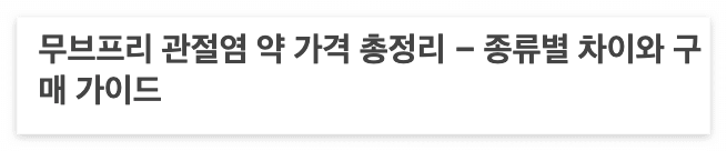 한편, 무브프리와 성분이 유사한 국내 제품도 다양하게 출시되어 있습니다. 이를 통해 국내 소비자들은 많은 선택지를 가질 수 있습니다. 예컨대, 비슷한 제품군의 시장 가격대도 무브프리관절염 약가격과 비슷하거나 약간 높은 수준에 형성되어 있으니 이를 참고해보세요.