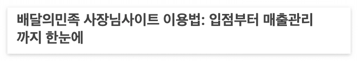 배달의민족 사장님사이트는 음식 주문을 관리하는 단순한 시스템이 아니라, 가게 운영 전반을 지원하는 강력한 관리 플랫폼이에요. 매출 관리, 고객 소통, 메뉴 관리, 리뷰 응대 등 운영의 효율성을 높여주는 다양한 기능을 제공합니다. 사장님사이트를 제대로 안다면, 매출 증대는 물론 지속적으로 성장하는 가게로 만들어줄 수 있답니다. 오늘부터 사장님사이트의 기능을 하나하나 살펴보며 활용법을 배워보세요!